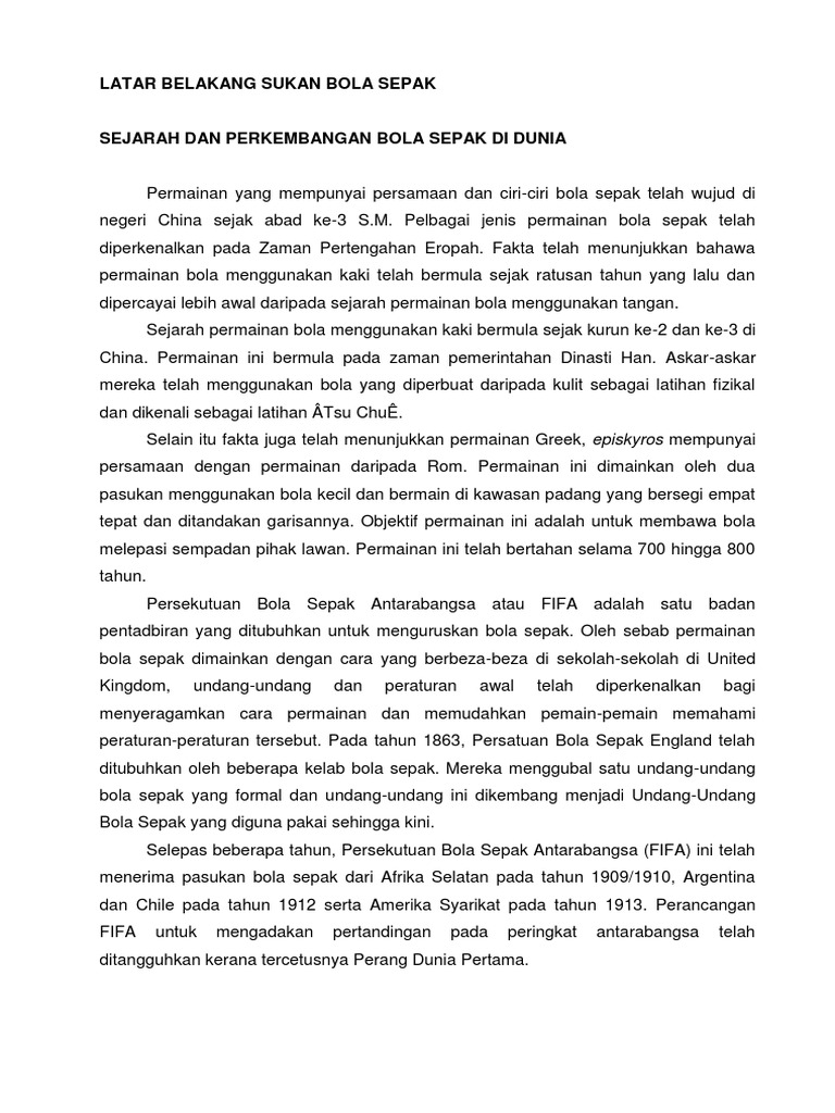 . Kajian ini bertajuk Kata-kata Pinjaman dalam Istilah Sepak Bola iaitu memfokuskan bahagian morfologi dalam perlawanan bola sepak. Olahraga ini dimainkan oleh dua tim yang berlawanan masing-masing pemain dari. Kepimpinan jurulatih bola sepak sekolah yang digemari dan gaya kepimpinan sebenar.