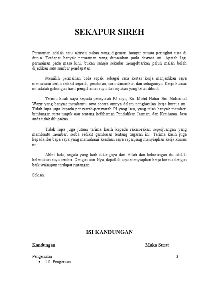 Kerja Kursus Kemahiran Bola Sepak Pdf